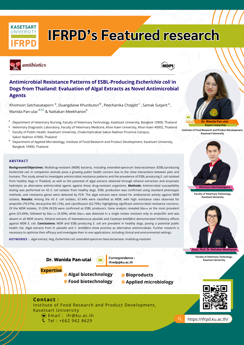 Antimicrobial Resistance Patterns of ESBL-Producing Escherichia coli in Dogs from Thailand: Evaluation of Algal Extracts as Novel Antimicrobial Agents